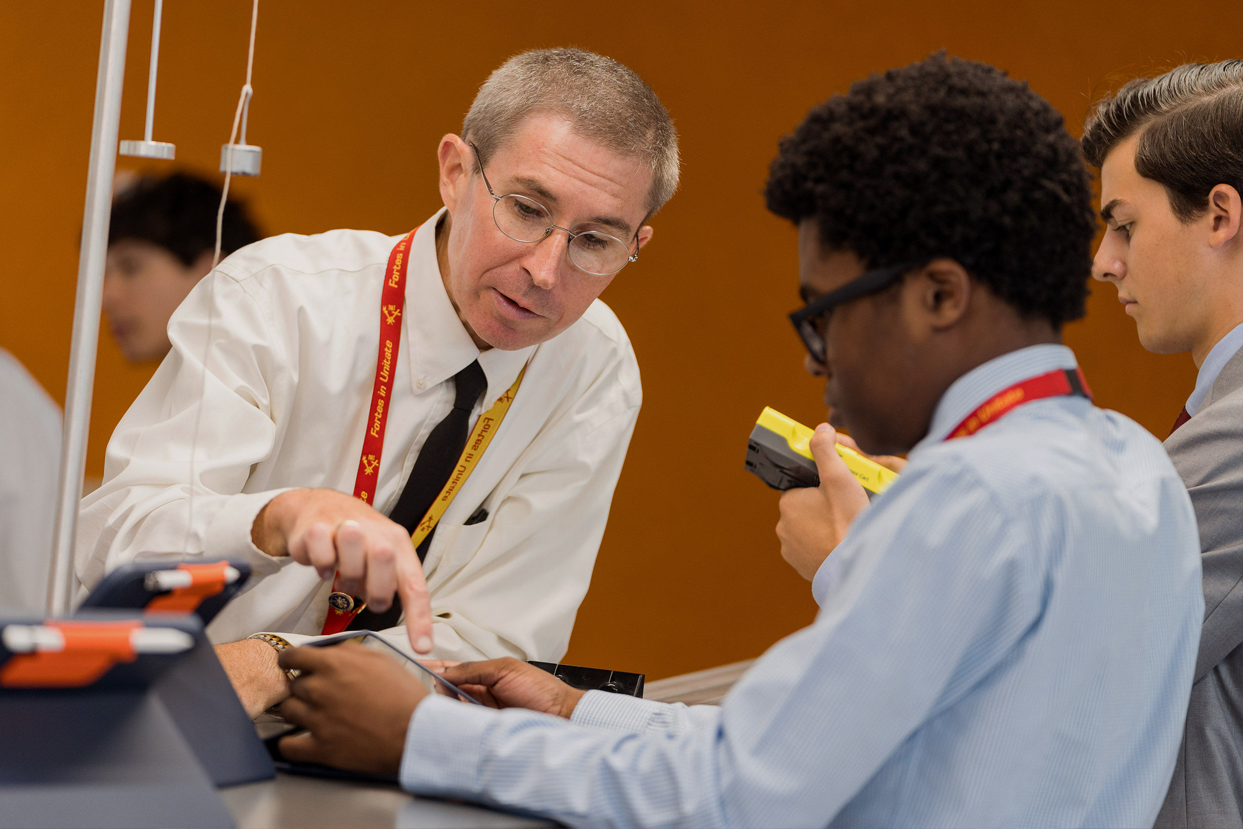 Faculty in the Dolan Family Science, Technology, and Research Center work with students on submissions for local and national competitions.