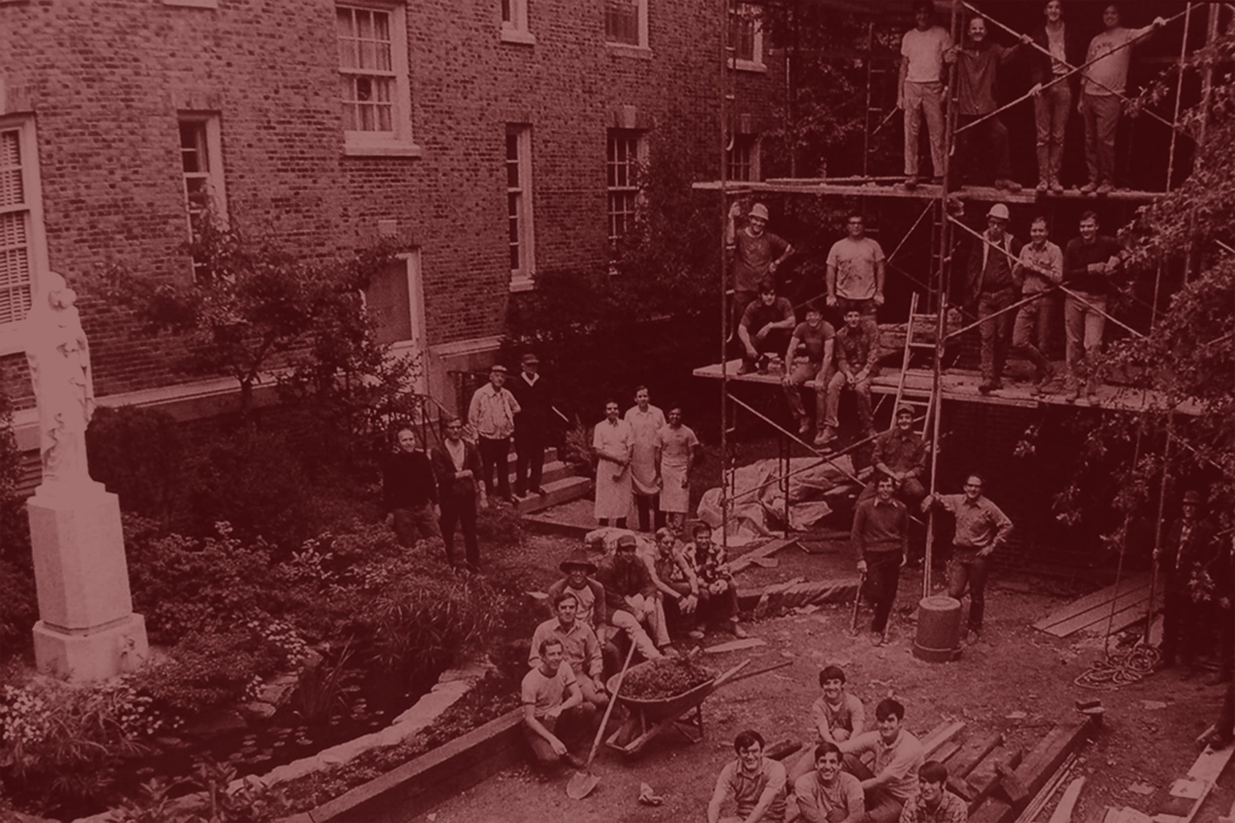 May 1, dedication by the Most Rev. Thomas E. Molloy, S.T.D., of the statue of the Blessed Virgin Mary located in the courtyard and donated by the Sodality.