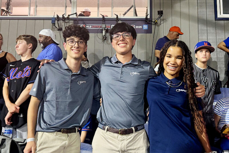 The weekend in Williamsport, Pennsylvania, home of the Little League World Series, was packed with unforgettable experiences. The two prepped with ESPN producers, met MLB stars including Francisco Lindor and Cal Raleigh, and even crossed paths with Chaminade alumnus Keith Raad ’11, the radio voice of the New York Mets, who also called the game for WFAN. During the broadcast, the pair provided commentary on highlights such as Mark Vientos’ three-run homer for the Mets and Cal Raleigh’s MLB-leading 47th home run for the Mariners in the Mets’ 7–3 victory.